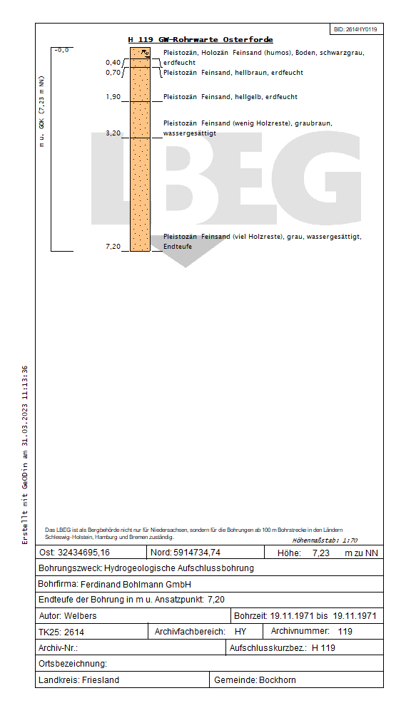 Der NLWKN übernimmt keinerlei Gewähr für die Aktualität, Korrektheit, Vollständigkeit oder Qualität der bereitgestellten Informationen. Haftungsansprüche gegen den NLWKN, welche sich auf Schäden materieller oder ideeller Art beziehen, die durch die Nutzung oder Nichtnutzung der dargebotenen Informationen bzw. durch die Nutzung fehlerhafter und unvollständiger Informationen verursacht wurden, sind grundsätzlich ausgeschlossen, sofern seitens des NLWKN kein nachweislich vorsätzliches oder grob fahrlässiges Verschulden vorliegt.