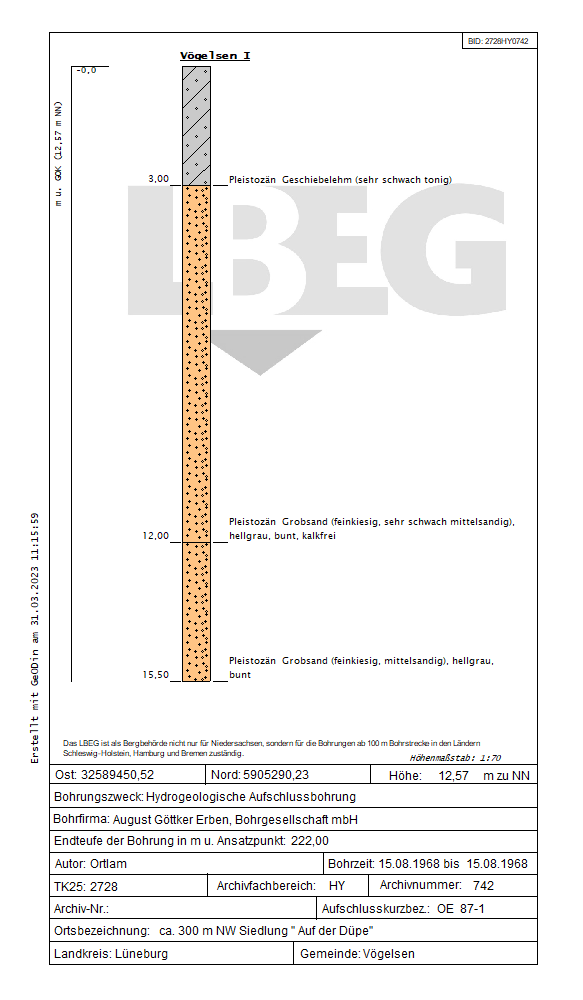 Der NLWKN übernimmt keinerlei Gewähr für die Aktualität, Korrektheit, Vollständigkeit oder Qualität der bereitgestellten Informationen. Haftungsansprüche gegen den NLWKN, welche sich auf Schäden materieller oder ideeller Art beziehen, die durch die Nutzung oder Nichtnutzung der dargebotenen Informationen bzw. durch die Nutzung fehlerhafter und unvollständiger Informationen verursacht wurden, sind grundsätzlich ausgeschlossen, sofern seitens des NLWKN kein nachweislich vorsätzliches oder grob fahrlässiges Verschulden vorliegt.