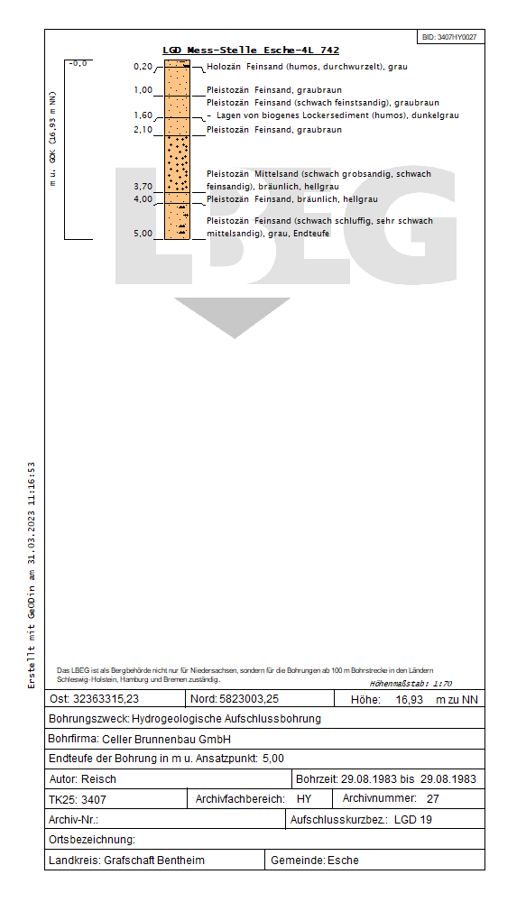 Der NLWKN übernimmt keinerlei Gewähr für die Aktualität, Korrektheit, Vollständigkeit oder Qualität der bereitgestellten Informationen. Haftungsansprüche gegen den NLWKN, welche sich auf Schäden materieller oder ideeller Art beziehen, die durch die Nutzung oder Nichtnutzung der dargebotenen Informationen bzw. durch die Nutzung fehlerhafter und unvollständiger Informationen verursacht wurden, sind grundsätzlich ausgeschlossen, sofern seitens des NLWKN kein nachweislich vorsätzliches oder grob fahrlässiges Verschulden vorliegt.